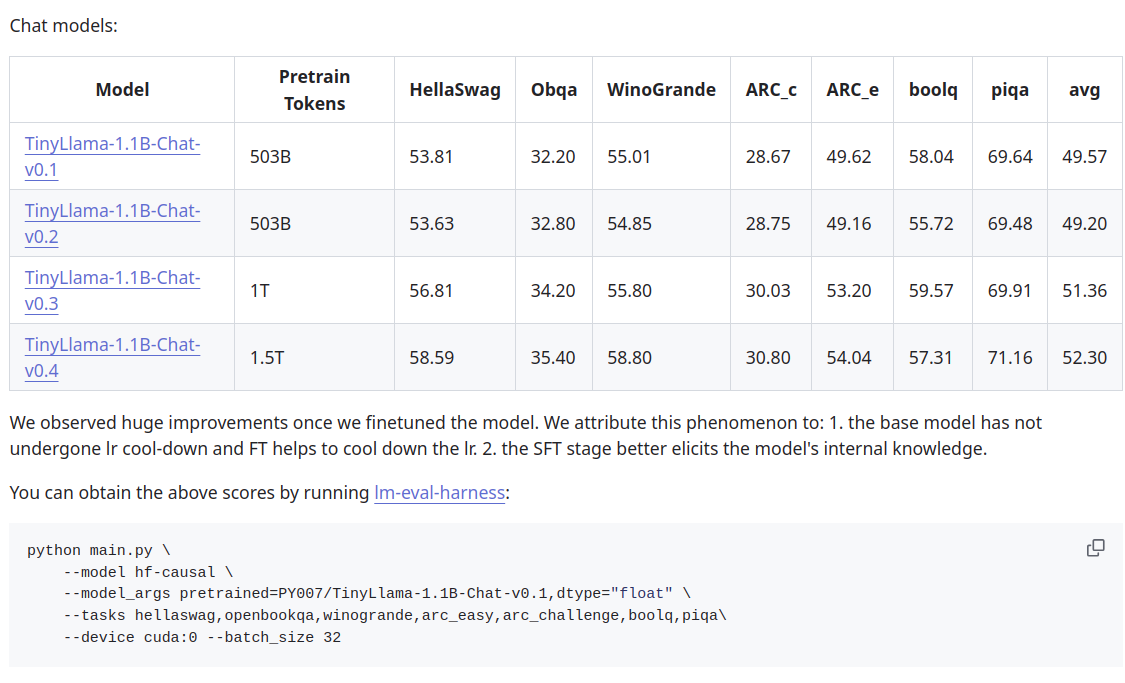 The official score for Tiny Llama against HellaSwag (and other benchmarks ) can be found in link 7 .