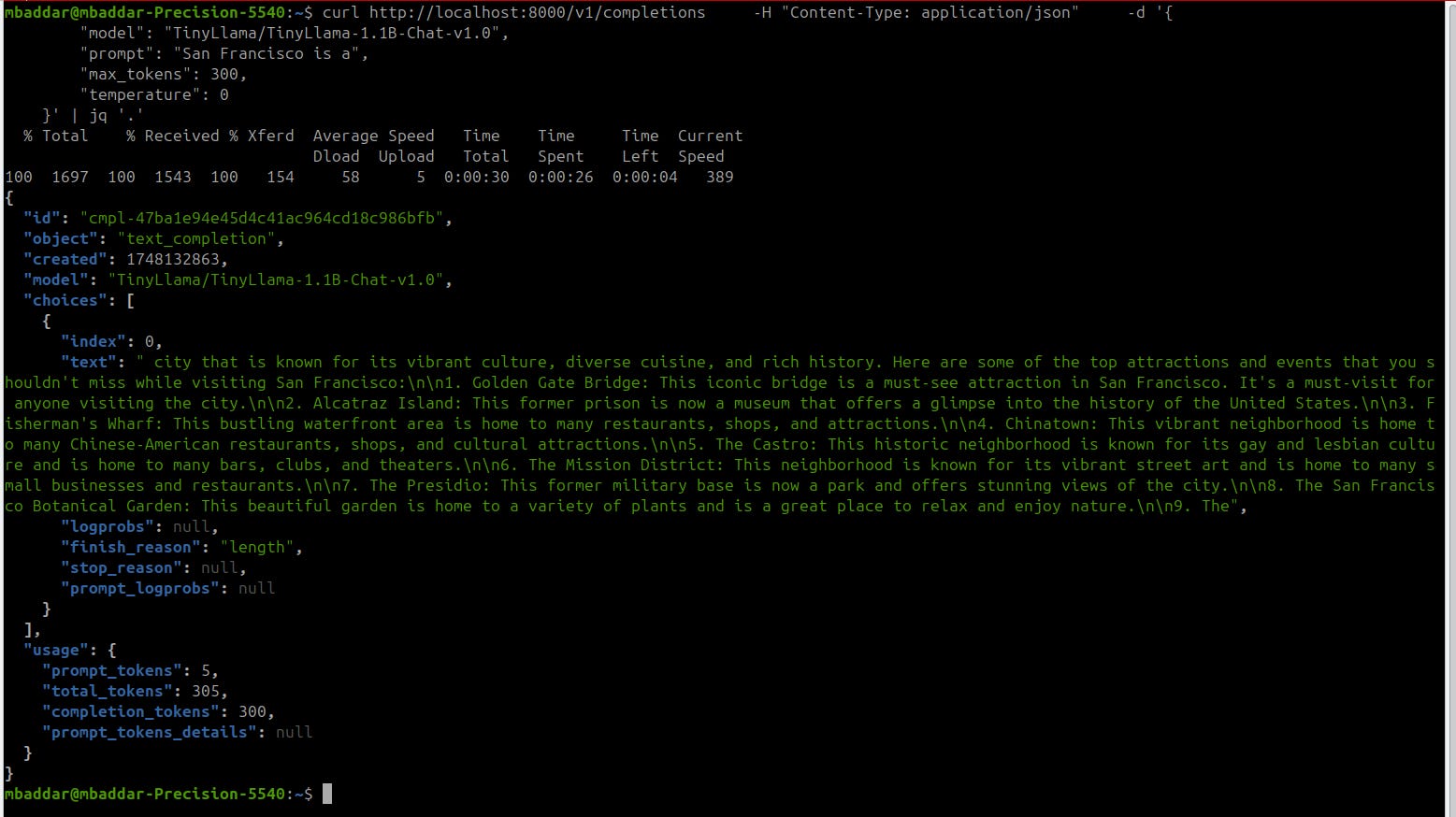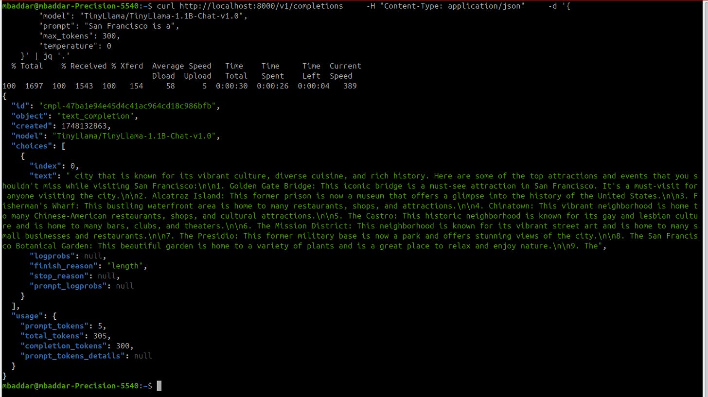 curl http://localhost:8000/v1/completions -H "Content-Type: application/json" -d '{
