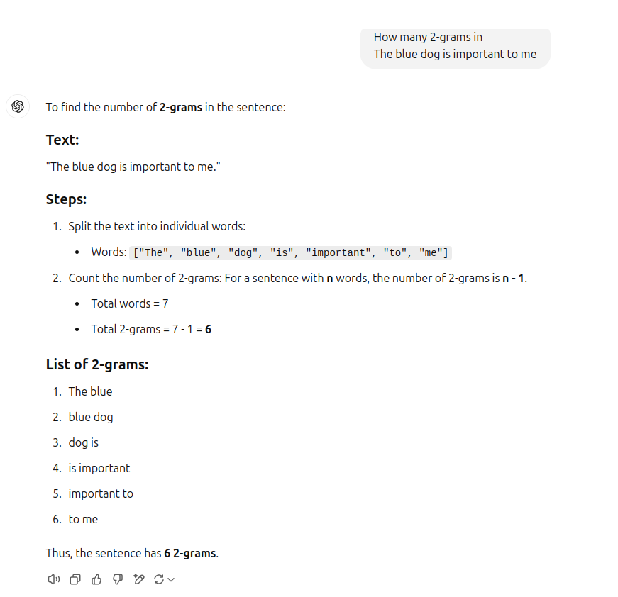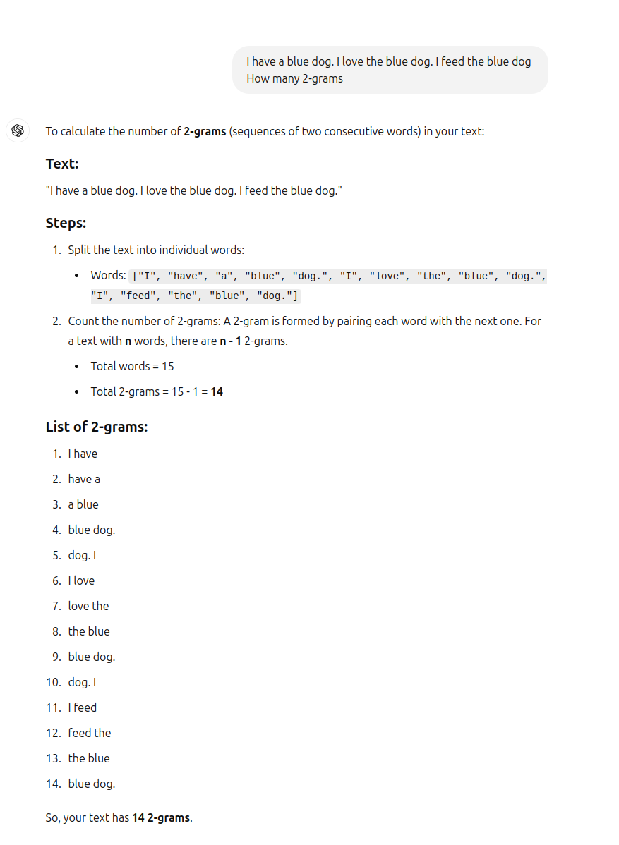 Of course, usually we don’t consider all words in the original text, but the most important ones to generate N-grams. How do we know most important words ? An importance index like “Term-Frequency Inverse Document Frequency (TF-IDF” is used. Simply we strip down the original large text to the sent of sentences having import words, which have high values. However, this processing is out of the scope of this articles.