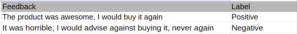 Given a set of “feedbacks” where each feedback consists of a set of a “few” sentences , it will help to identify if this feedback is positive or negative. This can help, for example to predict the likeability of purchase for this product, hence control how it is ranked.