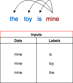 In figure 3 a naive example on how we can “assume” some target to use for training the embedding model to get the matrix. Given millions of real world text , we will try to set the “encoding” of each token to help make this word able to predict the context around it , i.e. nearby words.